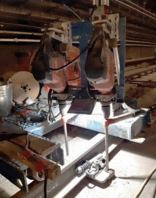 B) típus: C16 minőségű vasalt betongerendában lévő 140 mm mély és 50 mm átmérőjű furatokba M24 menetes csavarok beragasztása Icosit KC 220/60 TX anyaggal. Utókezelés nem történt.